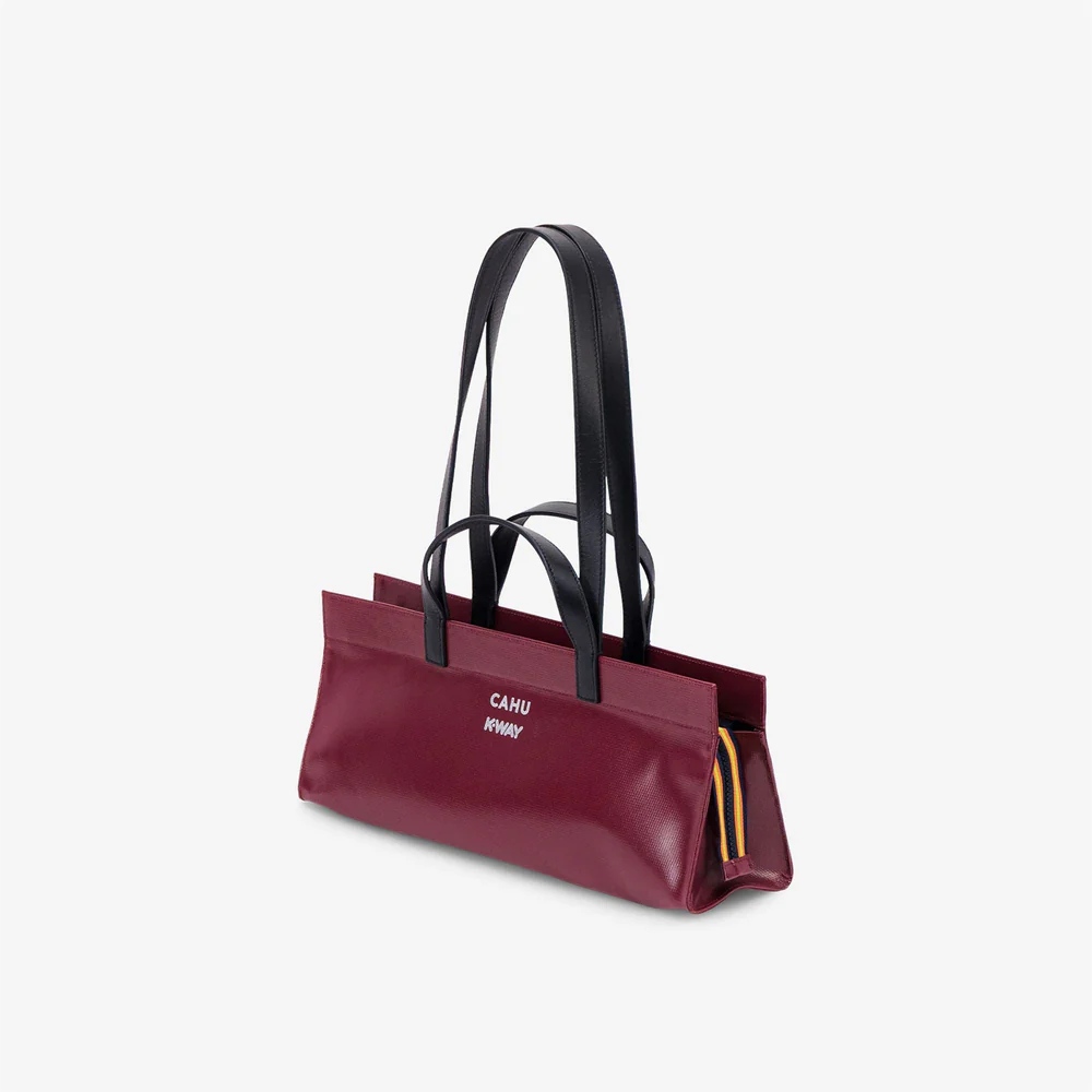Il pleut, tant mieux: K-Way associe son ADN anti-averse au savoir-faire maroquinier de CAHU. La capsule imagine des sacs prêts pour la ville, le bureau et l’évasion. Deux formats complémentaires dessinent la ligne: le cabas PRATIQUE LARGE, pensé pour tout emporter, et la MAMIE BAGUETTE, plus compacte, esprit 90s. Design fonctionnel, allure nette, finitions robustes: la formule vise le quotidien sans renoncer au style. Un geste clair: capsule waterproof, silhouette graphique, couleurs franches. Pensée pour durer, pensée pour bouger, partout.