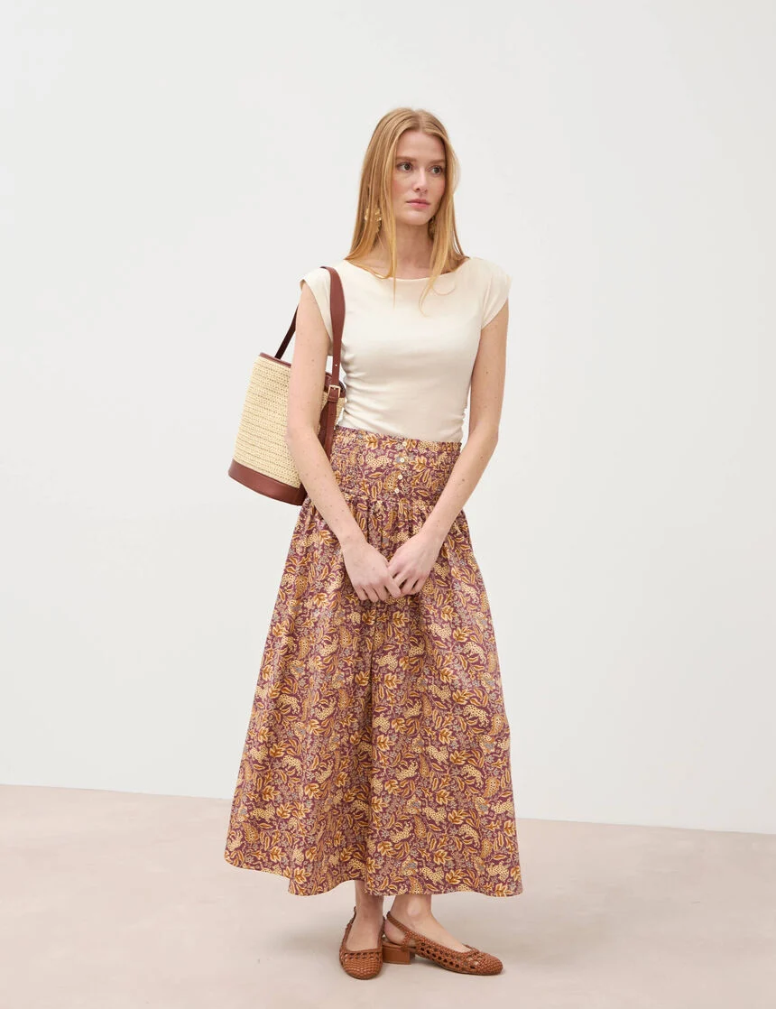 Palette apaisante et lumineuse: indigo en vedette, écru, sable et kaki en bases, relevés de bleu ciel, lilas et corail. Les rayures fines, micro-fleurs et carreaux doux animent chemises et robes sans voler la vedette aux coupes. On joue les contrastes: jean brut + haut pastel, veste écru + jupe cargo kaki, robe midi corail + sandales naturelles. Les accessoires restent sobres pour laisser parler la couleur et les textures.