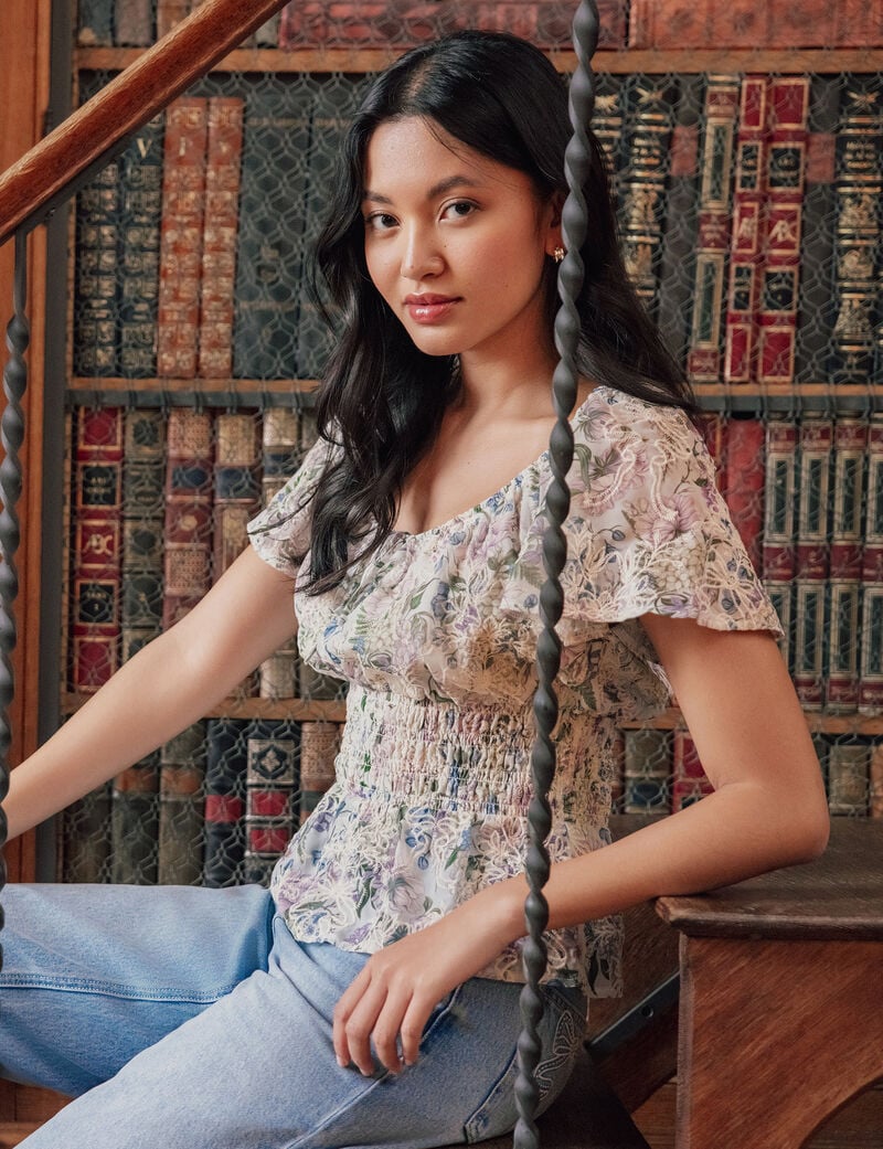 Pour le quotidien, cap sur les hauts. Hauts délicats et maille ajourée. Les blouses jouent les cols brodés, liens lavallière légers, manches ballon et fines nervures. Les tops smockés épousent la poitrine, parfaits avec un jean clair. Côté maille, cardigans courts en pointelle, pulls côtelés à encolure carrée et gilets ruban se portent ouverts sur une robe. Les finitions bordées de picots ou de dentelle fine donnent du relief sans surcharge, tout en restant faciles à entretenir. Couleurs crème, rose thé ou bleu pâle.