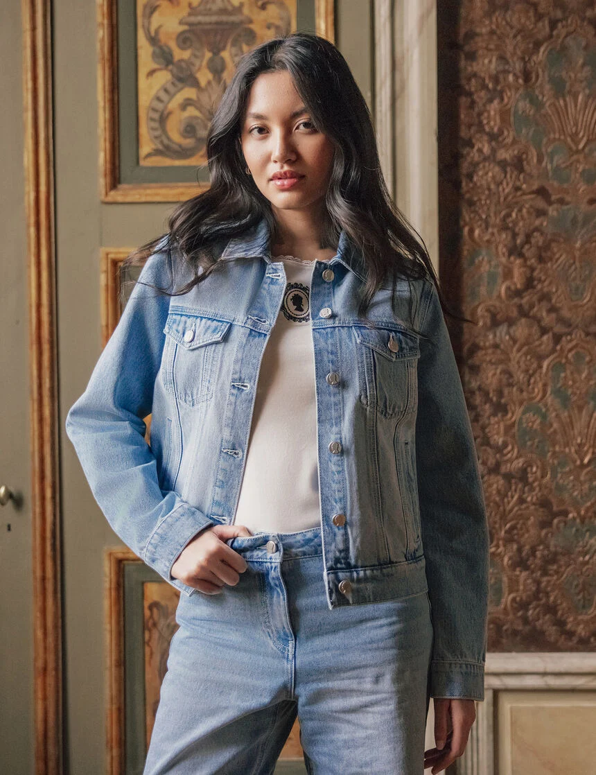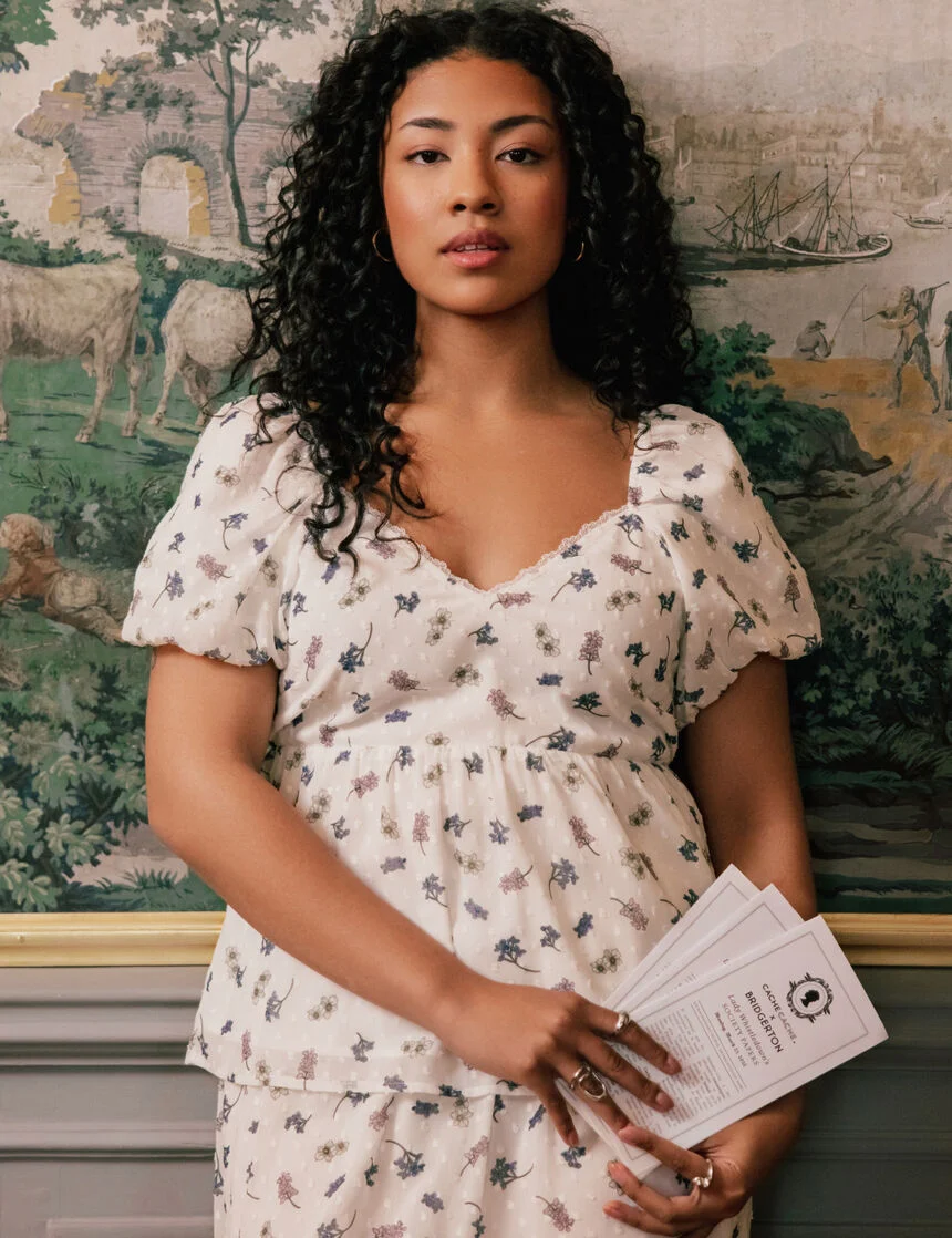Romantisme assumé, silhouettes qui dansent et détails précieux : la nouvelle collection fait entrer l’esprit régence dans notre vestiaire de tous les jours. Esprit regencycore, rendu portable au quotidien. Les coupes flattent sans figer, entre tailles hautes souples et décolletés carrés. La palette mise sur des pastels frais — bleu poudré, rose blush, lilas, vanille — relevés de touches ivoire, marine et noir. On pense garden party, brunch chic, bureau d’été: des pièces faciles qui transforment une tenue en un clin d’œil.