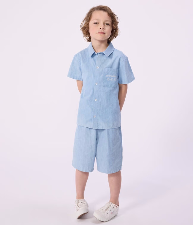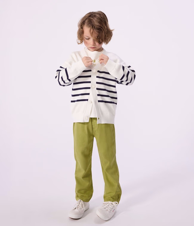 Côté enfants, les filles adoptent des robes sans manches ou à manches courtes en coton, parfois animées de cœurs ou d’un imprimé floral lumineux. Les garçons misent sur vestes rayées, shorts en coton et tee-shirts épurés; blouses et chemises complètent l’offre plus habillée. Les cardigans unis ou rayés signent la superposition pratique. Les tailles vont de 3A à 12A, pour les fratries coordonnées. Entre la collection blanche et la collection fleurie Petit Bateau, on joue les contrastes: clair absolu, bleu frais, ou bouquets délicats selon l’humeur du moment.