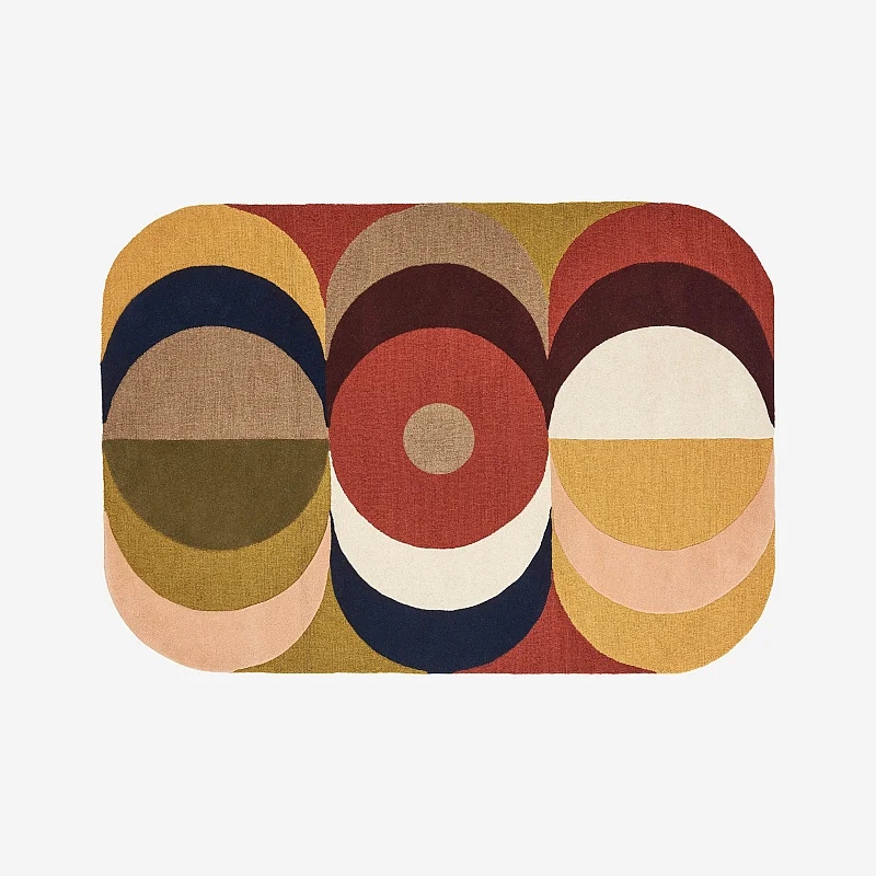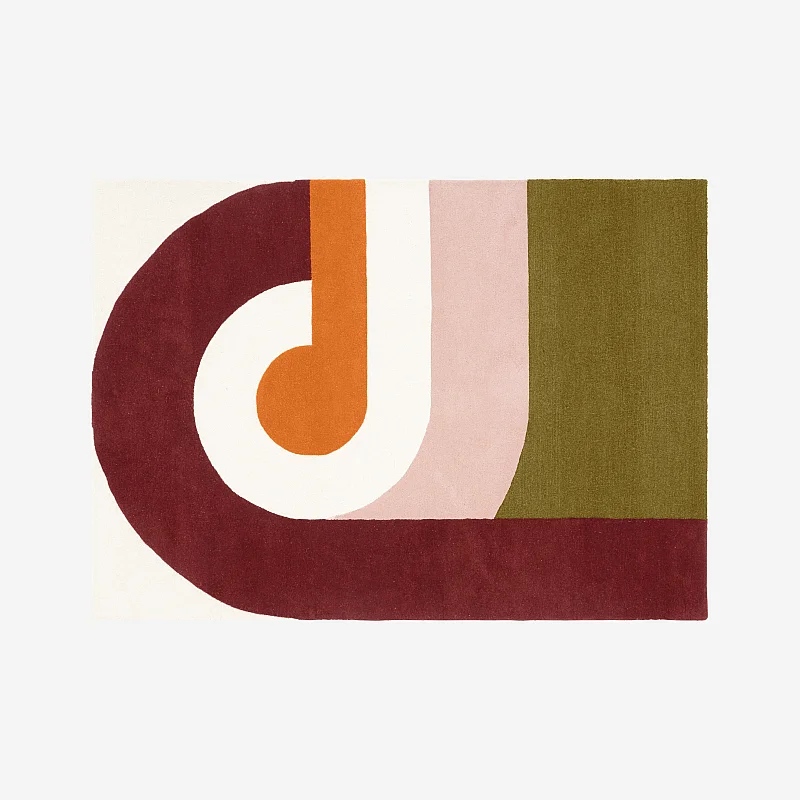 Côté tapis, la matière prime. Les modèles tuftés en laine jouent les reliefs, parfois mêlés à une bouclette généreuse, pour un toucher nuage. Formats rectangulaires 160 x 230 ou 170 x 240, et versions rondes 150 ou 250 cm, selon l’effet souhaité. Teintes fortes: écru et corail clair, rosé, bronze avec bordeaux, beige multicolore, bleu canard, vert forêt, bleu nuit. En complément, des tissés plats en coton 75 x 180 dynamisent un couloir. Focus sur le graphisme libre qui structure. Résultat: une présence chic et très immédiate.