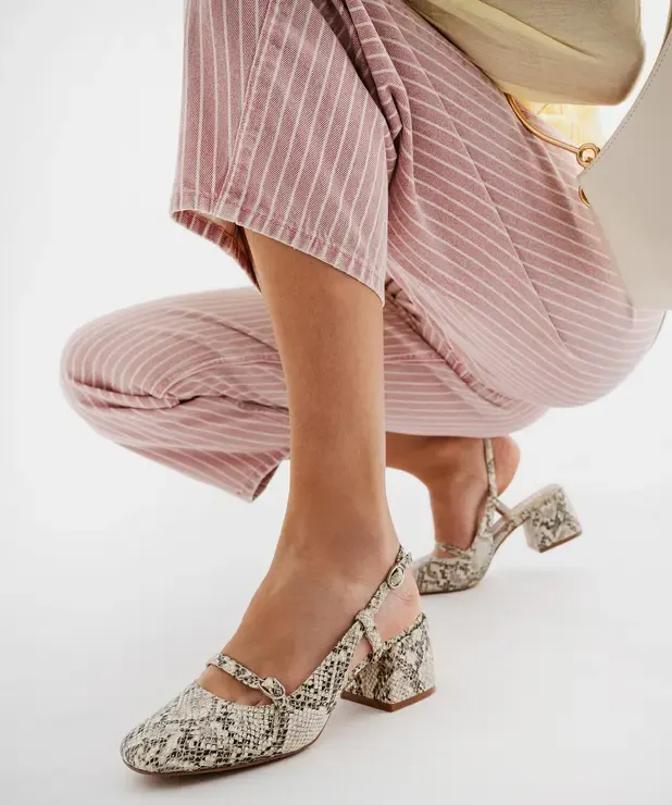 Cap sur l’offre féminine. Escarpins pointus, slingbacks graphiques, sandales à brides fines ou talons blocs stables, mules minimalistes: chaque silhouette trouve son allié. Hauteurs modérées à affirmées, du kitten heel au 9 cm, pour élancer sans vaciller. Les détails signent la collection: brides cheville ajustables, laçages délicats, torsades, nœuds couture, strass placés. La palette reste raffinée: noir, nude, champagne et argent, avec blush, ivoire et touches lilas. De quoi sublimer robes satinées, tailleurs fluides, combinaisons épurées ou jupes midi plissées. Les pointes carrées et bouts ouverts modernisent les classiques, aussi.