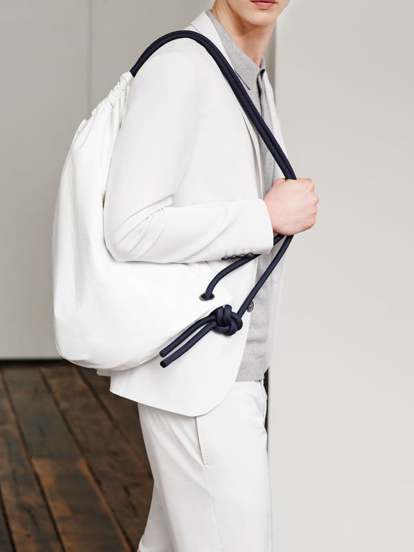 BLAZER EN TISSU TECHNIQUE / PANTALON EN TISSU TECHNIQUE / SAC À DOS CORDES