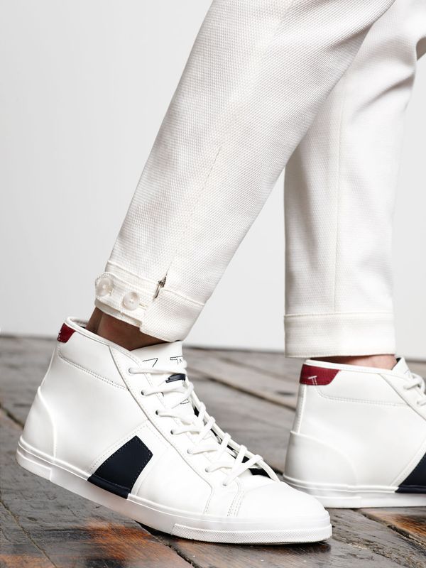 BLOUSON SIMILICUIR DOUBLURE BLANCHE / PANTALON À PASSEMENTERIES À LA TAILLE / BASKETS
