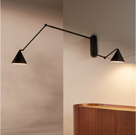 Minimaliste, sculpturale, en métal époxy noir ou finition moka mat.