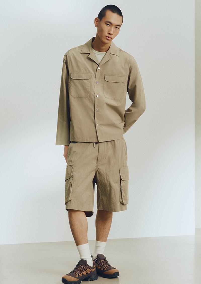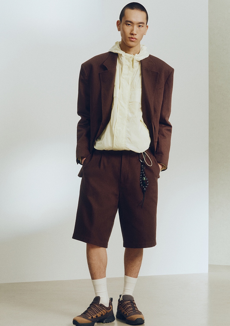 Tailoring et essentiels. Atelier joue l’équilibre entre tailoring décontracté et fonctionnalité : vestes épurées, chemises à la coupe ample, pantalons bien dessinés, pièces faciles à superposer. L’idée est claire : construire des looks simples, efficaces, qui passent d’une journée active à une soirée plus habillée sans changer de registre.