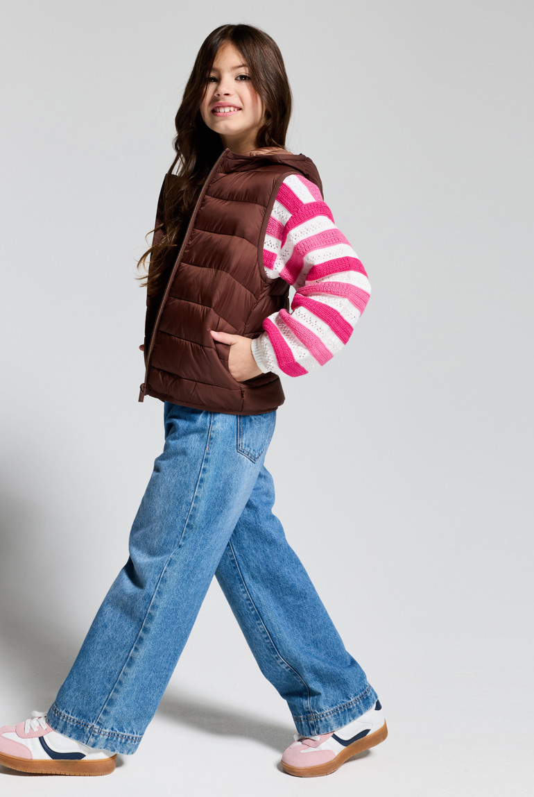 À l’arrivée, on retient des pièces futées et à retenir faciles à vivre. Ajusteurs de taille, pressions discrètes, ceintures élastiquées et coutures souples accompagnent la croissance. Vestes déperlantes, doudounes matelassées légères et parkas doublées couvrent les transitions. Côté style, jouez la superposition: robe + cardigan oversize, jean flare + blouse popeline, sweat coloré + jupe qui tourne. Une basket blanche, un headband, et c’est réglé. Un dressing joyeux, durable, pensé pour bouger — et sourire, sans compromis sur le confort quotidien absolu.