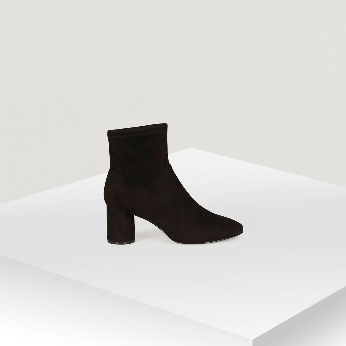 Bottines aspect suédé, coloris uni. Talon moyen de forme cylindrique, découpe sur le cou-de-pied. La grande originalité de cette paire de bottines chic vient de son talon tout en rondeur et de sa forme enveloppante. On la porte avec un pantalon slim, une blouse et un blouson en cuir façon motard pour un look tendance rock. Pour jouer sur la féminité, on les adopte avec une jupe courte évasée, un pull ajusté en maille fine et un manteau court ample dans un esprit plus habillé.Détails produitType : Talon largeFinition : Bout rondCaractéristique : Bottes Mi-molletFermeture : A enfilerComposition et entretien100% POLYESTEREntretien facile