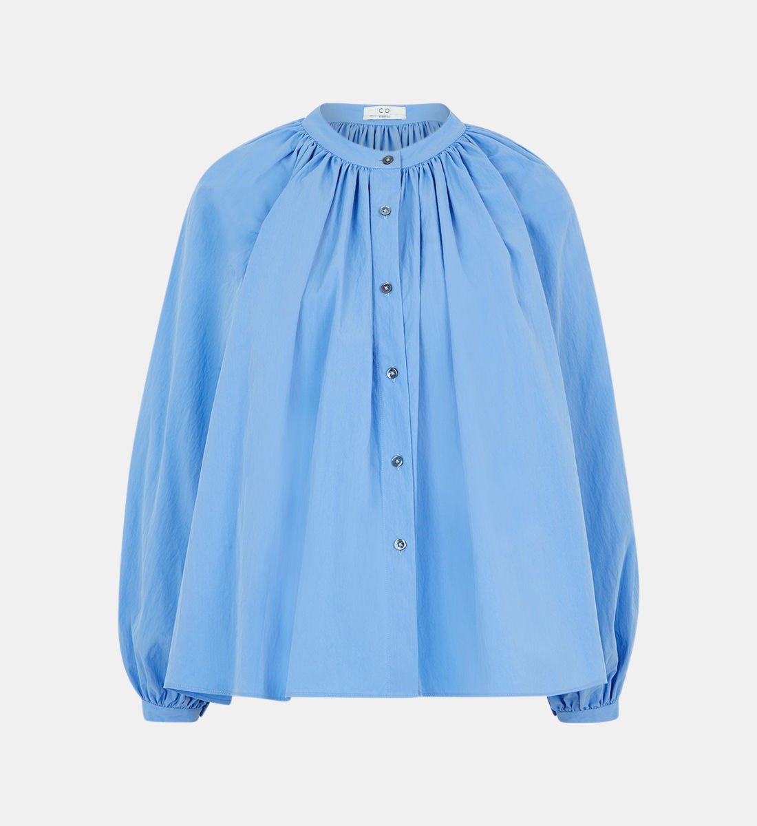Cette chemise ample Co en coton est munie d’un col officier, de manches ballon, d’une fermeture boutonnée et de fronces sur le haut.