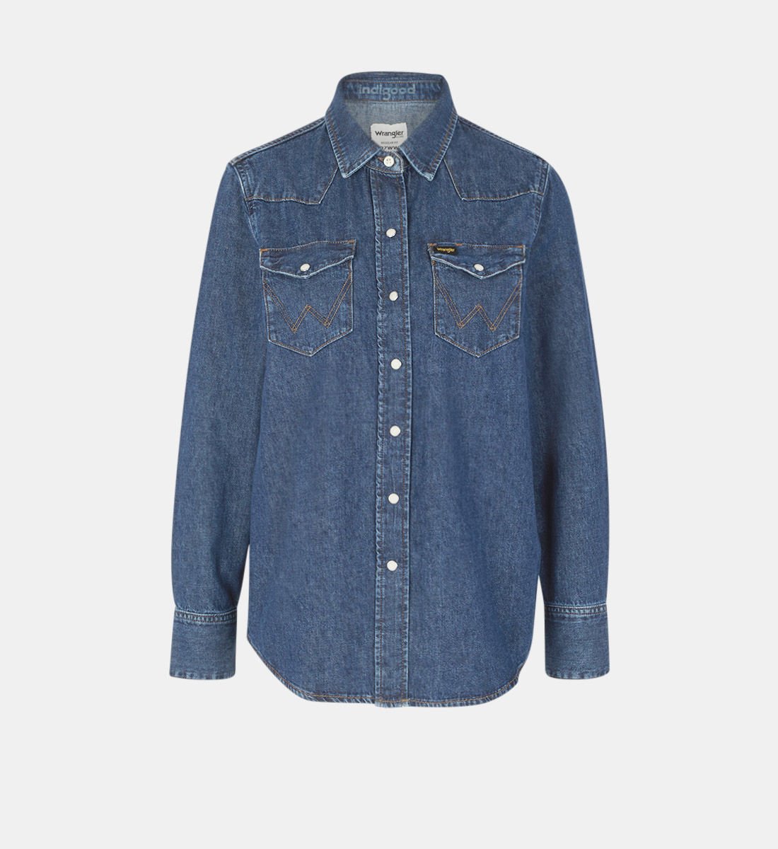 Cette chemise droite Wrangler en coton denim, se pare d’un col classique, de manches longues, d’une fermeture par boutons pression, de 2 poches à rabat pressionné sur la poitrine, d’une base arrondie et de surpiqûres contrastantes.