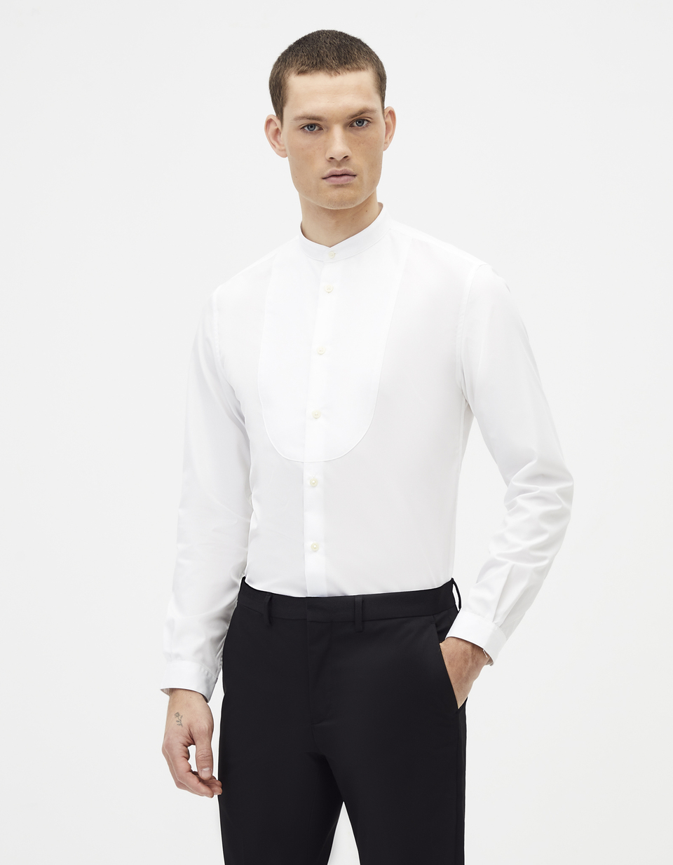 Col mao, plastron et coupe slim pour cette chemise homme qui accompagnera parfaitement un costume. La tenue longue durée de la couleur protège l’éclat de son tissu 100 % coton au fil des lavages tandis que le traitement facilite le repassage.