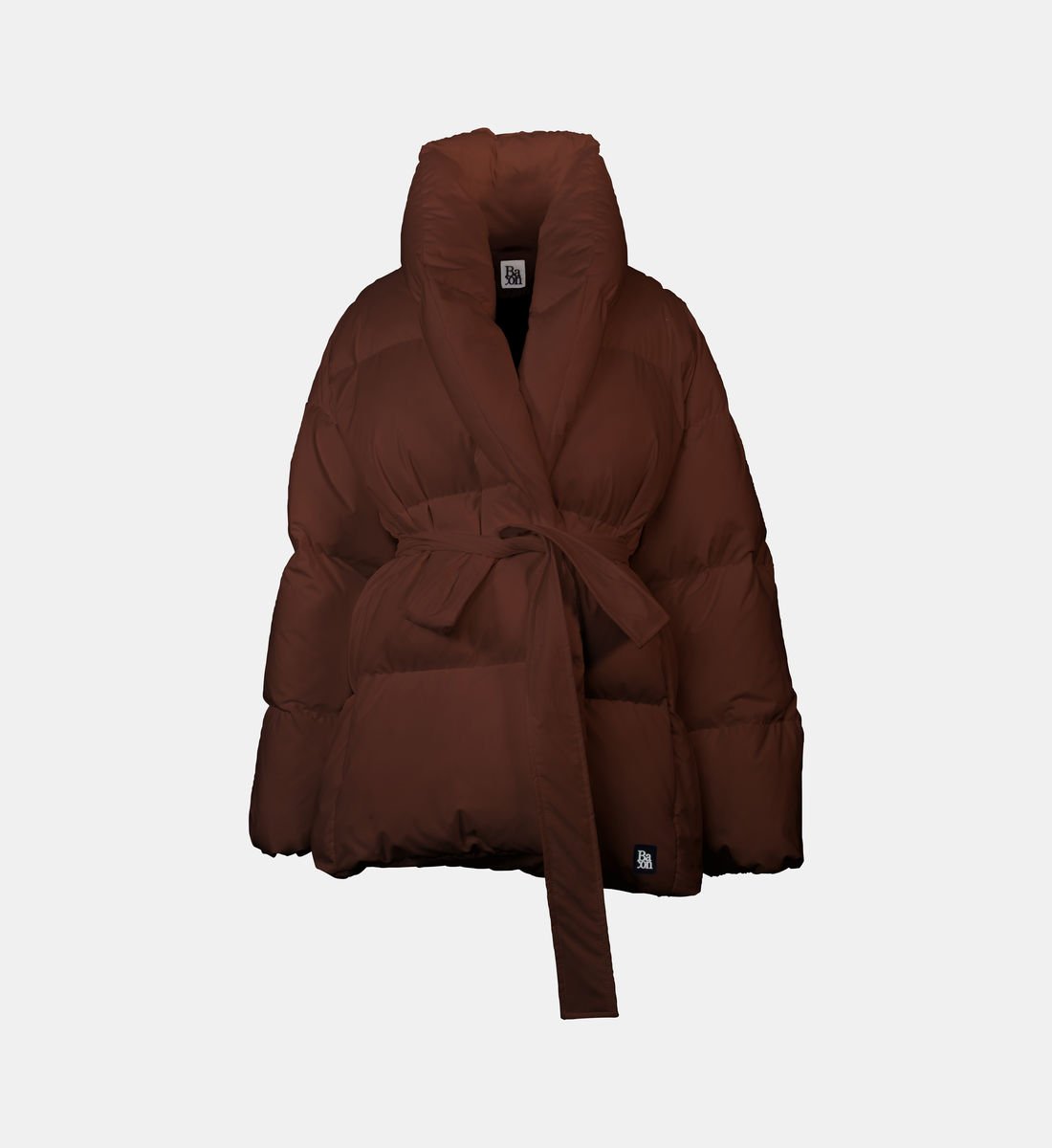 Cette doudoune cintrée et mi-longue Bacon présente un col relevé, des manches longues, une ceinture et un aspect matelassé. Elle se distingue par son patch siglé sur le devant.