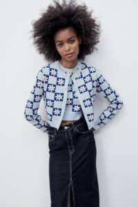 GILET EN MAILLE JACQUARD À FLEURS – Zara