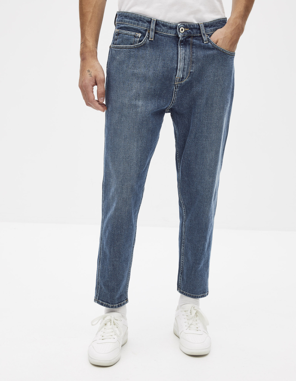 C85 Jean RELAX Cest LE « FIT » du moment. La coupe est ample avec une jambe large en haut et resserrée en bas. Il marque la différence avec sa longueur 7/8 ème, dite « cropped » très à la mode. Son porter loose, ou large si lon préfère, donne une allure cool et décontractée.