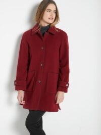 Douceur du cachemire, chaleur de la laine… vous êtes sûre de faire le bon choix avec ce superbe manteau esprit caban. Un discret passepoil contrastant souligne le col plat arrondi, la parmenture, la base, les poches plaquées et la patte boutonnée au bas des manches longues. Emmanchures marteau. Base arrondie fendue sur les côtés. Carrure légèrement épaulée. Drap 70% laine, 20% polyester, 5% polyamide, 5% autres fibres. Doublure 100% polyester.Longueur 85 à 90 cm selon les tailles. Existe en grandes tailles.Photo retouchée