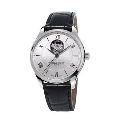 Cette montre Frédérique Constant Classics Index automatique 40mm 3 aiguilles se compose d’un boitier en acier, d’un cadran argenté avec un coeur ouvert et d’un bracelet en cuir noir. Verre saphir. – Référence fournisseur : FC-310MS5B6