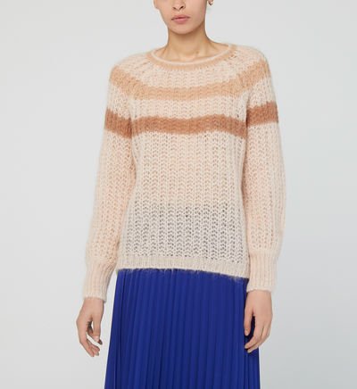 Cet article Pull Noellie droit en maille rayée ajourée Beige Pablo est disponible en plusieurs tailles