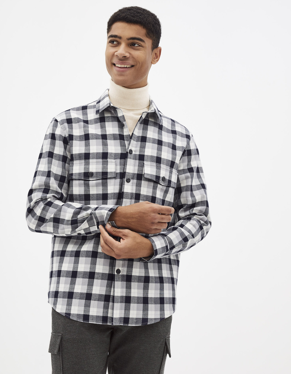 Portez la sur-chemise à carreaux homme sur un t-shirt ou un col roulé, dans un esprit tendance et décontracté. La chemise est confectionnée dans un tissu 100 % coton. Elle a un col français et deux poches boutonnées sur la poitrine.