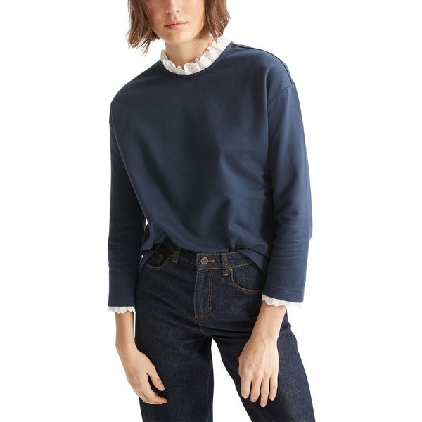 Sweat coton bio col froufrou brodé Cyrillus