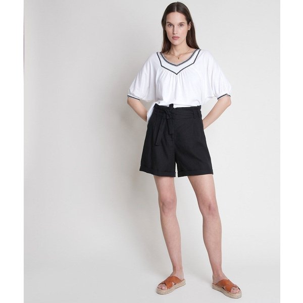 Détails produits:Loose et décontracté, découvrez le top EGLANTINE. Ce top fluide en coton et viscose arbore de jolies borderies contrastées qui le structure et des manches ballons terriblement tendance. Versatile, il sera votre allié pour passer facilement du jour au soir grâce à son look à mi- chemin entre un tee- shirt oversize et une blouse raffinée. – manches 3/4 – manches ballons – broderies – col rond – pièce fabriquée en Inde Anastasia mesure 1m80 et porte une T.36. Avec le top EGLANTINE, la mannequin porte le short FARIEL et les sandales GABRIELLA.Composition détaillée:• Matière Principale : 60 % Coton, 40 % Viscose • Broderie : 100 % PolyesterEntretien:• Lavage 30 ° délicat• Pas de blanchiment• Repassage doux• Pas de séchage en tambour ménager