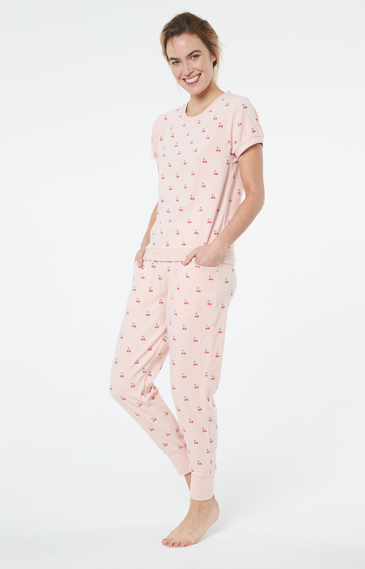 -40%Sweat-shirt manches courtes en éponge bouclette imprimé motif cerises 80 % coton 20 % polyester