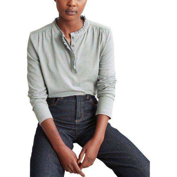 Pour un quotidien chic, facile et féminin, le T-shirt joue le mix matières avec de subtils détails volantés.DétailsPetit col rond et patte boutonnée cachée en voile. Manches longues. Fronces sous découpes épaules et sous empiècement carrure dos. Base droite. Longueur dos 60 cm environ.Matière 85% coton, 15% lin.Détails volantés en voile 100% coton.Léger et résistant, le lin est agréable à porter. Cette fibre naturelle gagne en souplesse et en douceur avec les lavages. Le coton est également une fibre naturelle qui laisse respirer la peau. Lin/coton une belle association. Confection Inde.Nous avons choisi l’Inde pour son savoir-faire, son expertise et sa culture de la couture. We chose India for its know-how, expertise and sewing culture.CaractéristiquesForme : StandardCol : Col rondLongueur de manche : Manches longuesEntretien• Température de lavage 30°• Pas de blanchiments• Pas de nettoyage à sec• Température de repassage faible• Ne pas sécher en tambour