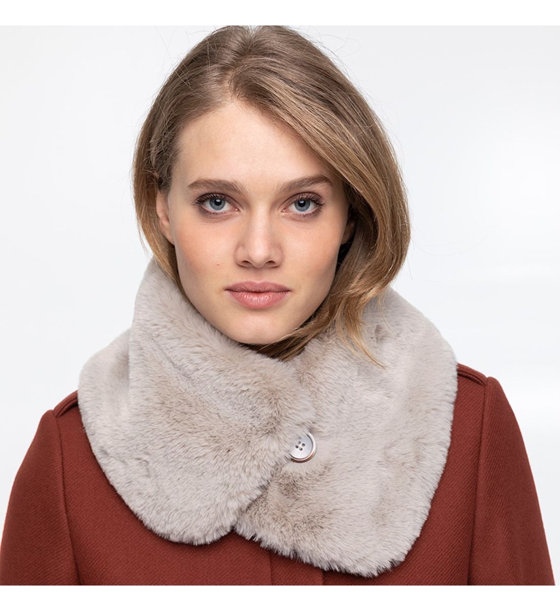 Tour de cou en fausse fourrure TRENCH & COAT Matières et entretien: Fausse fourrure. Tissu extérieur : 100% polyester. Entièrement doublé. Doublure : 100% polyester. Nettoyage à sec Détails produits: Fermé à l’aide d’un bouton TRENCH & COAT perpétue la passion du beau produit au prix juste en s’appuyant sur l’expertise de sa maison Lener Cordier, créateur et fabricant de trenchs et manteaux depuis 1954.