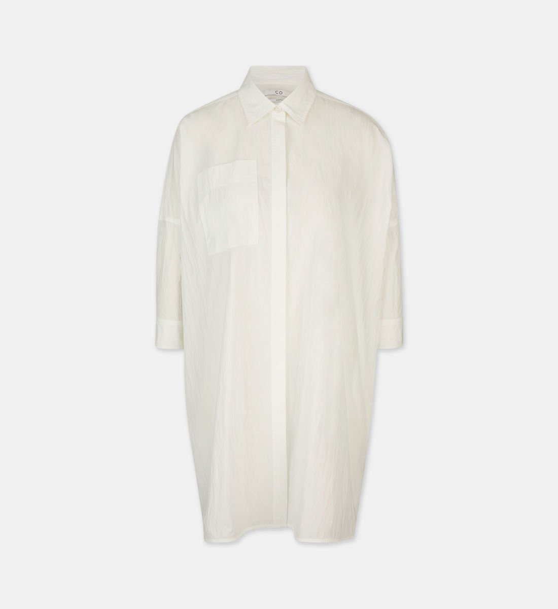 Cette tunique chemise ample Co composée de coton est munie d’un col classique, de manches 3/4, d’une fermeture boutonnée dissimulée sous rabat, de 2 poches prises dans la couture, d’une poche poitrine et d’une base fendue.