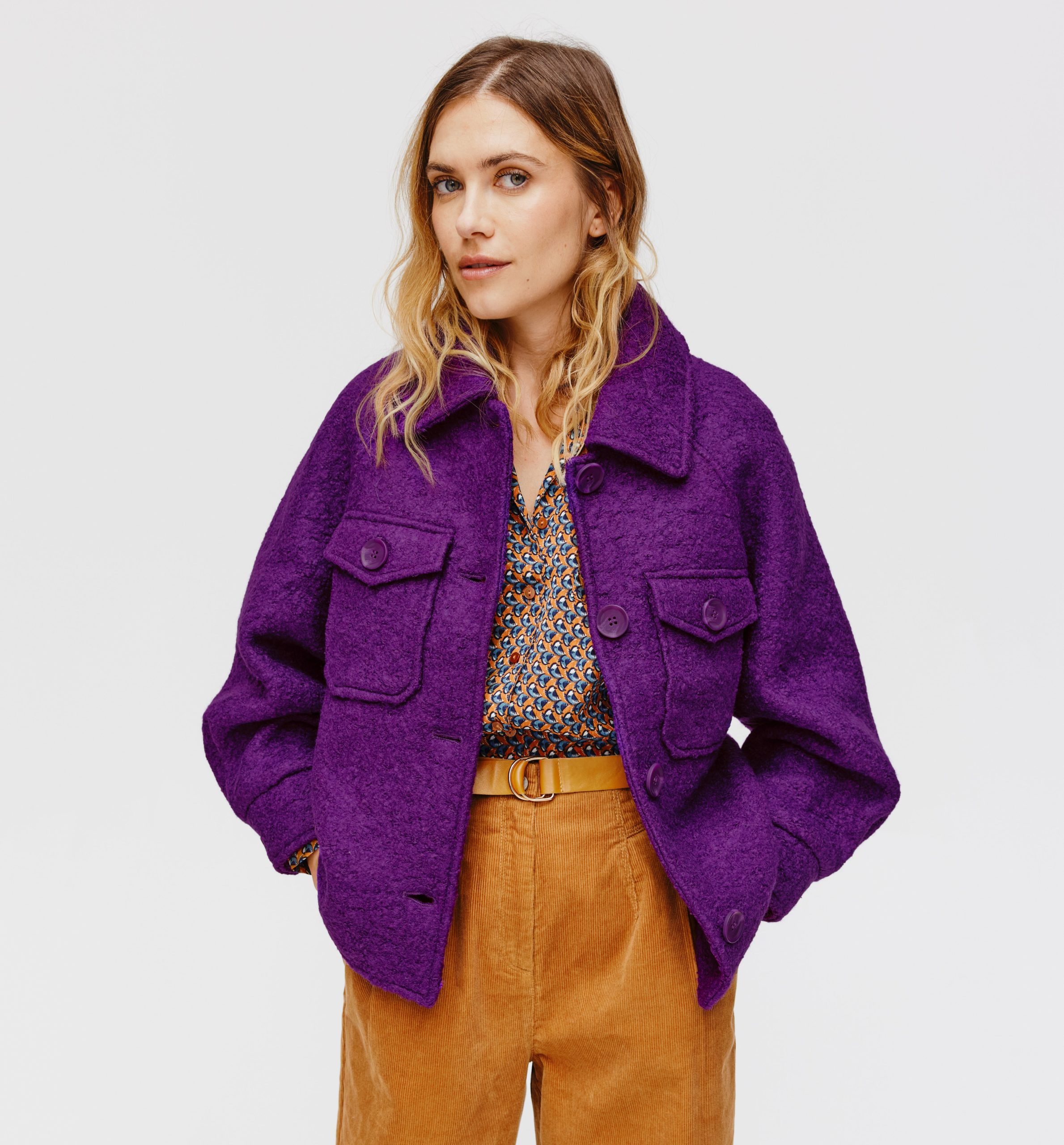 Classy ou trendy ? Il flotte comme un petit air des sixties sur cette veste en laine bouclettes mélangée, bien chaude et prête à défiler fashion en ville ou cool en pleine nature ! Coupe droite oversize. Emmanchures raglan. 2 poches poitrine avec rabat boutonné. Ouverture boutonnée devant, gros boutons ton sur ton. Manches longues, poignets boutonnés. Base droite. Finition piquée.
