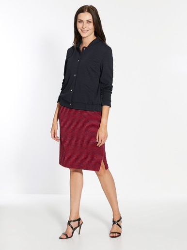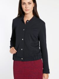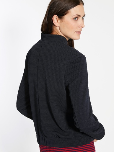 La veste-blouson : : l’une des grandes tendances de la saison ! Petit col droit. Fermée devant par pressions. 2 fausses poches passepoilées devant. Pinces poitrine. Poignet au bas des manches longues. Base légèrement élastiquée.Longueur 58 à 69cm selon les tailles.Cette veste en maille existe en grandes tailles. COMPOSITION : Maille extensible 99% polyester, 1% élasthanne.Photo retouchée