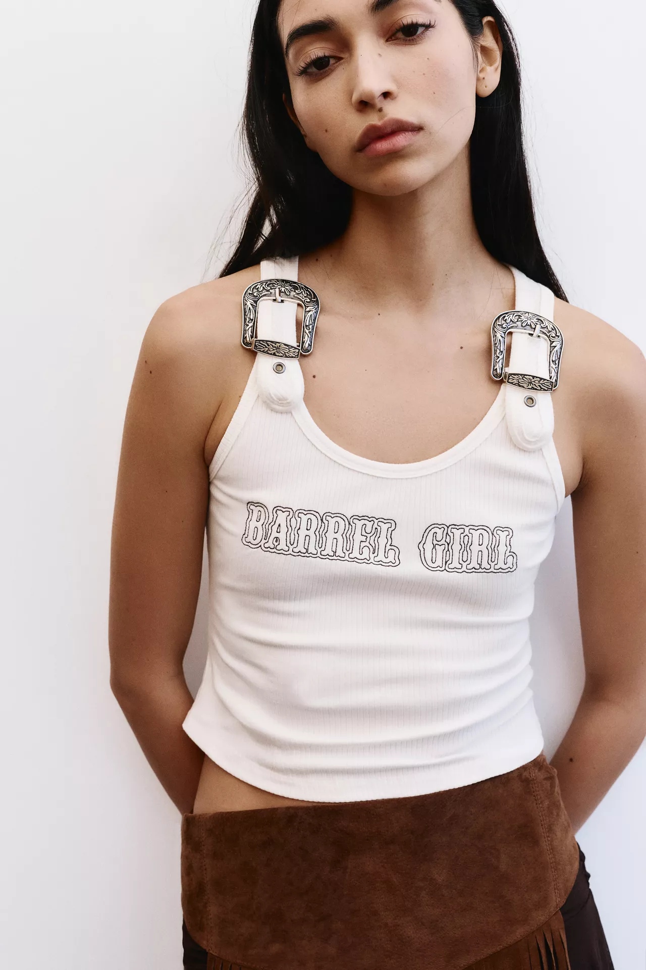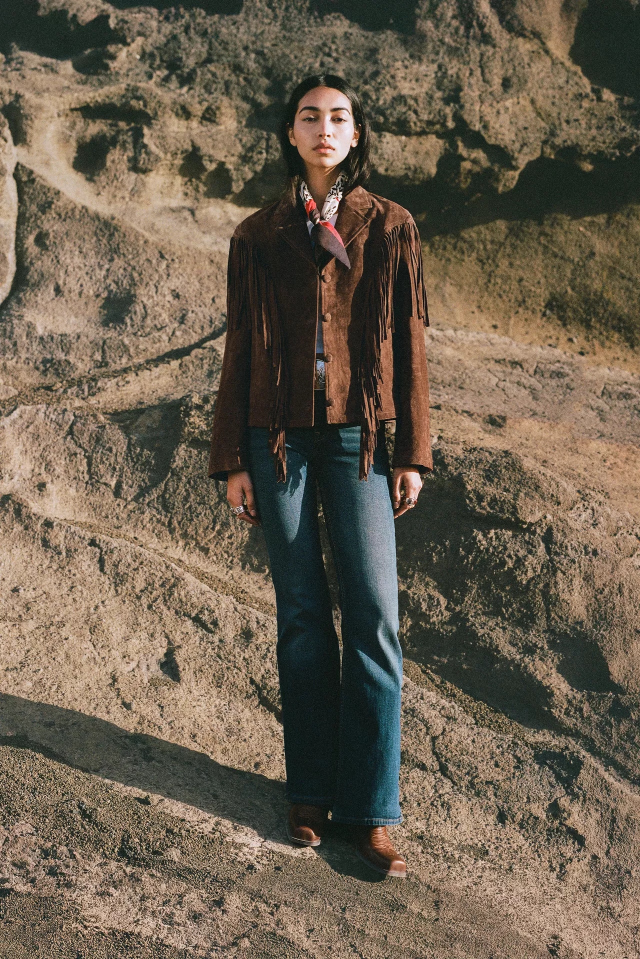 Côté palette, la collection joue la sobriété: noir profond, écru crémeux, sable doux, indigo délavé, avec des touches rouges et argent sur les finitions. Les lignes restent nettes pour flatter sans rigidité. Adoptez la veste courte avec un jean taille haute et un tee blanc; glissez le gilet sur une robe fluide pour contraster. Le bandana signe le look sans en faire trop. Les ceintures western structurent la taille et réveillent un simple pantalon droit ou une jupe midi, du matin au soir.