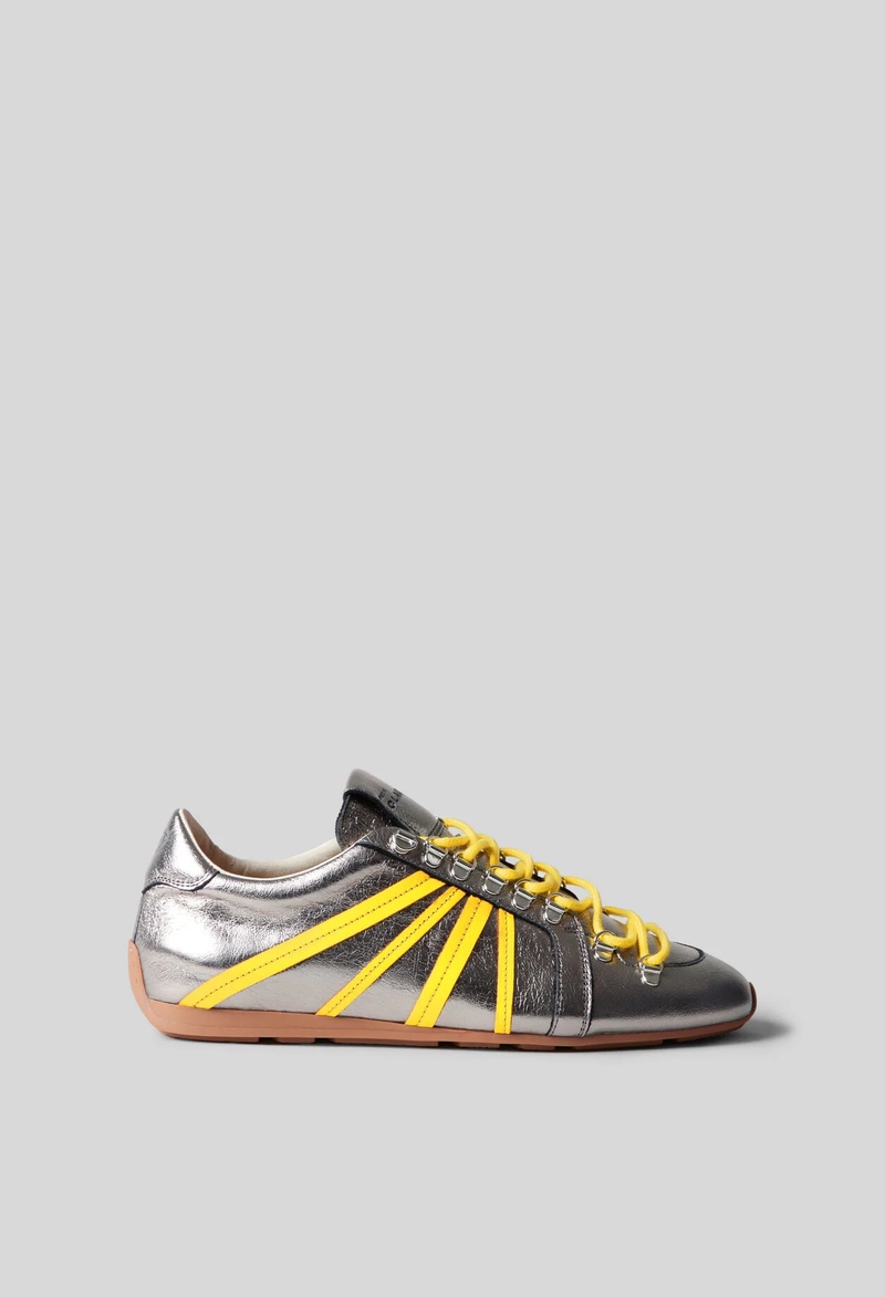 Matières et savoir-faire — Les Swing S se distinguent par leurs empiècements inspirés du soleil levant, rythmant la tige comme un éclat graphique. Le modèle Silver mêle cuir de vachette métallisé et lacets jaunes éclatants, pour une présence lumineuse et sûre d’elle. Les autres déclinaisons misent sur des finitions maîtrisées et un maintien précis, pensé pour celles qui vivent vite. Le résultat: une basket technique, joueuse, prête à répondre aux accélérations du quotidien. Sans emphase superflue, la coupe juste et la brillance mesurée priment ici.